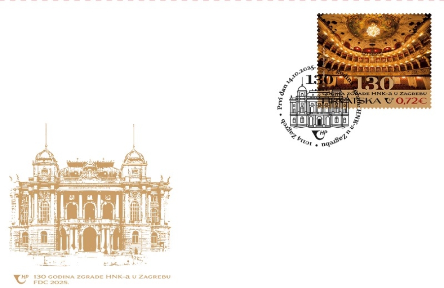 ZAGREB – Hrvatska pošta stavit je u optjecaj, danas 14. listopada novu prigodnu poštansku marku u povodu 130. obljetnice zgrade Hrvatskoga narodnog kazališta u Zagrebu, jednog od najvažnijih simbola hrvatske kulture i umjetnosti. Nominalna vrijednost marke iznosi 0,72 eura, a autor dizajna je Dean Roksandić, dizajner iz Zagreba. Na marki je prikazana dojmljiva unutrašnjost Hrvatskoga narodnog kazališta, prema fotografiji Mare Bratoš, fotografkinje iz Dubrovnika. Nova prigodna poštanska marka izdana je u nakladi od 25.000 primjeraka, u arku od 12 maraka, a uz nju je Hrvatska pošta pripremila i prigodnu omotnicu prvog dana (FDC).