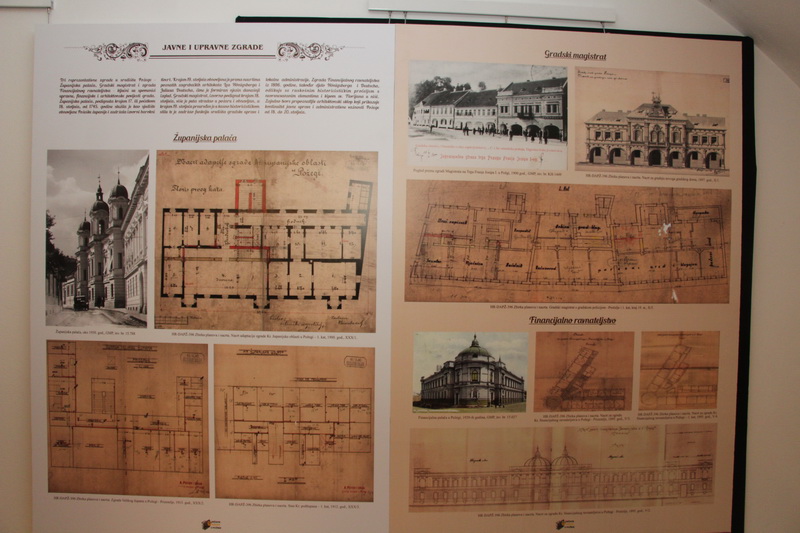 Izložba donosi uvid u razvoj grada kroz nacrte, planove, tehničku dokumentaciju i razglednice koji su ujedno i vizualna kronika epohe. Prikazuju se reprezentativni projekti poput Županijske palače, Gradskog magistrata, Gimnazije Požega, gradske i banovinske bolnice, vjerskih objekata, stambenih kuća, šetališta, mostova i drugih infrastrukturnih objekata koji su definirali gradski prostor. Ti projekti nisu samo građevinski pothvati – oni su i odraz političkih ambicija, ekonomskih mogućnosti te kulturnih i estetskih vrijednosti epohe koja je Požegu upisala u širi kontekst modernizacijskih procesa u tadašnjoj Austro-Ugarskoj Monarhiji.