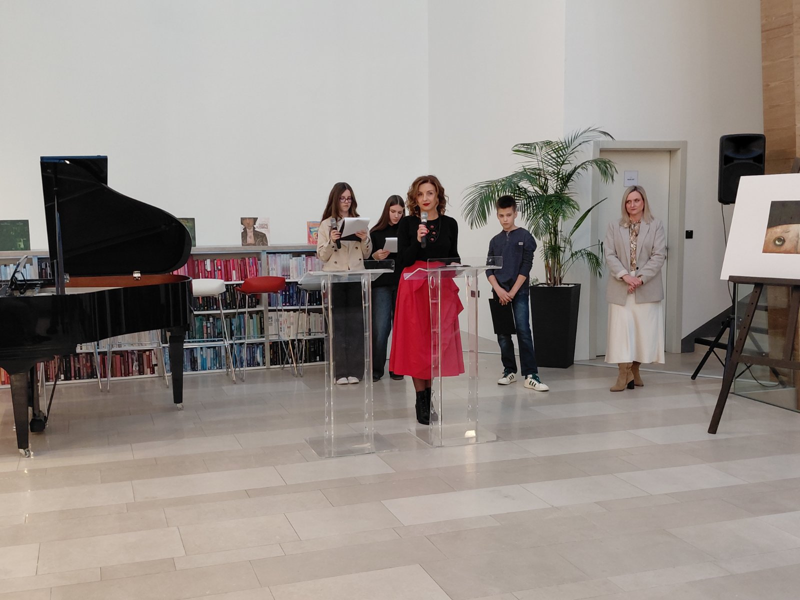 O izložbi su govorili učenici Franka Kronšteter (8.b), Ena Matić (8.b) i Šimun Odobašić (6.a), dok je prof. Đimoti Zima istaknula važnost suradnje obrazovnih i kulturnih institucija u realizaciji projekta. Izložbu je svečano otvorila zamjenica gradonačelnika Grada Požege Irena Martinek.