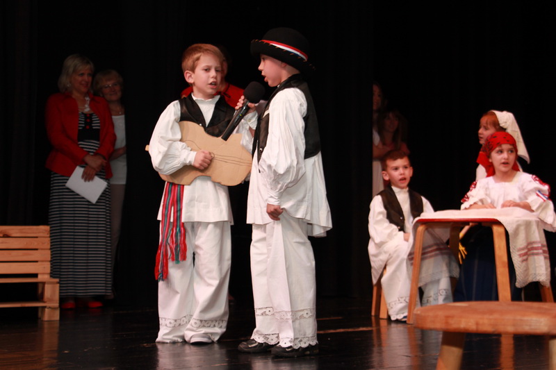 Na kraju odličnim igrokazom u izvedbi požeškog Dječjeg vrtića Cvjetna livada sve posjetitelje u dvorani su nasmijali do suza. Tema je bila ona narodna, nepresušna, događaji u seoskoj slavonskoj obitelji koja ima momka za ženidbu, a nema slavonske snahe, nego je ženik odabrao Hercegovku. Cijeli zaplet su odlično djeca odigrala uz dosta pjevanih dionica u kojima su osim folklornih elemenata ugradili i uspješnice poznatih pjevača koje karakteriziraju Slavonce, Hercegovce, Ličane. Likove su potpuno okarakterizirali onim narodnim epitetima kojima se oni svakodnevno identificiraju. Pohvala odgojiteljicama koje su pripremile tekst, postavile scenu i režiju, te uspjele s djecom to sve tako dobro uvježbati, da nije bilo uopće vidljivih pogrešaka. S dodatnim brušenjem i još kojom izvedbom, ovaj igrokaz bi mogao ići i na natjecanja.