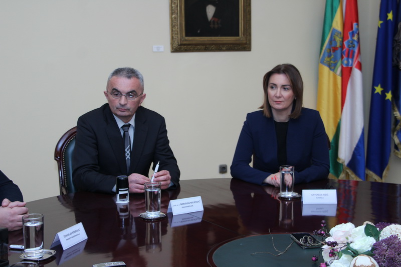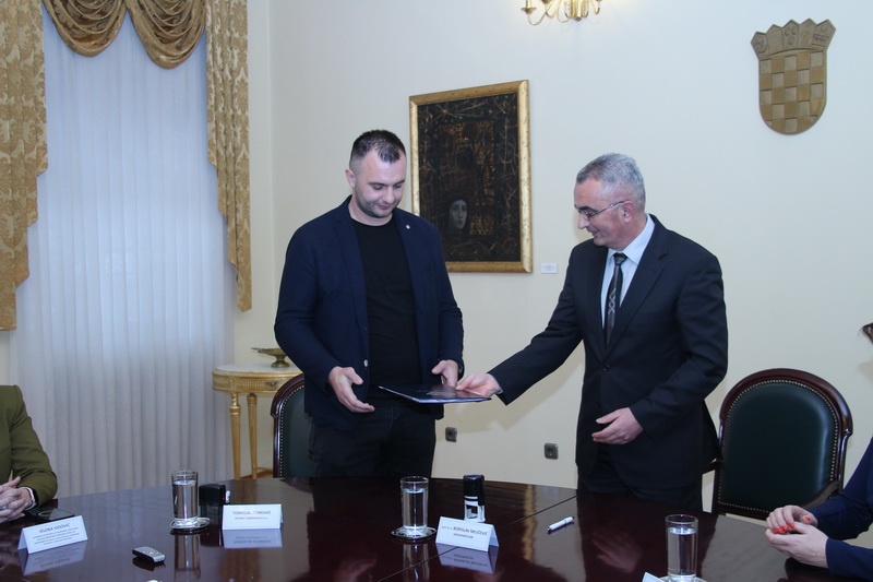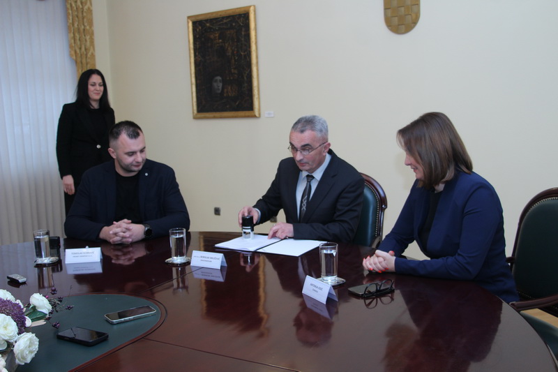 POŽEGA - U Gradskoj vijećnici grada Požega održano je svečano potpisivanje Ugovora s izvođačem radova za izgradnju križanja s kružnim tokom - rotorom na spoju Ulice Matice hrvatske i Sokolove ulice u koji je uklučeno i uređenje okolnih pješačkih staza i novih zelenih površina. Uz gradonačelnika Požega prof. dr. sc. Borislava Miličevića i požeško-slavonsku županicu Antoniju Jozić potpisivanju je nazočio u ime izvođača radova požeške tvrtke Promet građenje d.o.o. direktor Tomislav Ećimović, te v.d. pročelnice grada Požege Jelene Vidović i službenice za pripremu ugovora Ivane Čališ, uz nazočnost medija.