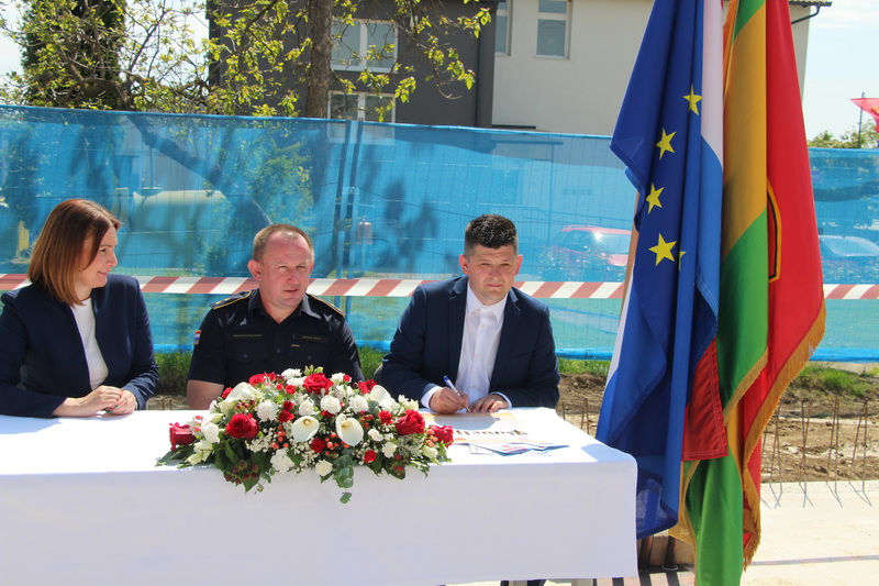 Kamen temeljac i potpisanu povelju položili su županica Antonija Jozić, općinski načelnik Dario Lončarević i predsjednik DVD-a Kaptol Tomislav Golić. Simbolični kamen temeljac položili su mlade nade DVD-a Kaptol, koji su ovom prigodom imali i pokaznu vježbu koju izvode na natjecanjima vatrogasne mladeži. Sve nazočne i zgradu u gradnji blagoslovio je kaptolački župnik vlč. Ivica Žuljević.