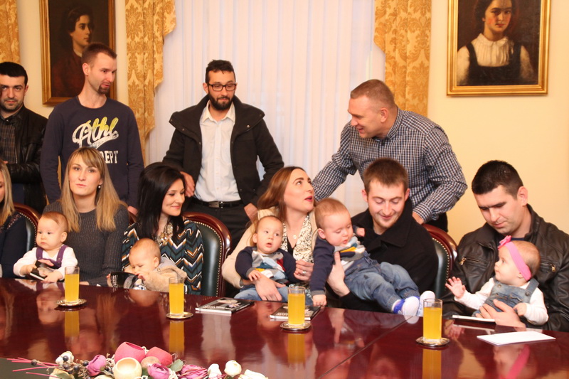 POŽEGA - U Gradskoj kući održan je prijem za 39 beba i njihove roditelje s područja grada Požege, rođene u veljači, ožujku i travnju ove godine. Mlade sugrađane pozdravili su gradonačelnik Vedran Neferović te njegovi zamjenici Mario Pilon i Darko Puljašić. Za 31. obitelj bilo je to prvo dijete u obitelji pa su dobili po 1.000 kn, jedna obitelj dobila je blizance i 2.000 kn, a za sedam obitelji to je treće ili sljedeće dijete pa su dobili 3.000 kn i prigodnu knjigu. Grad Požega je tako za najmlađe sugrađane dodijelio ukupno 54 tisuće kuna.