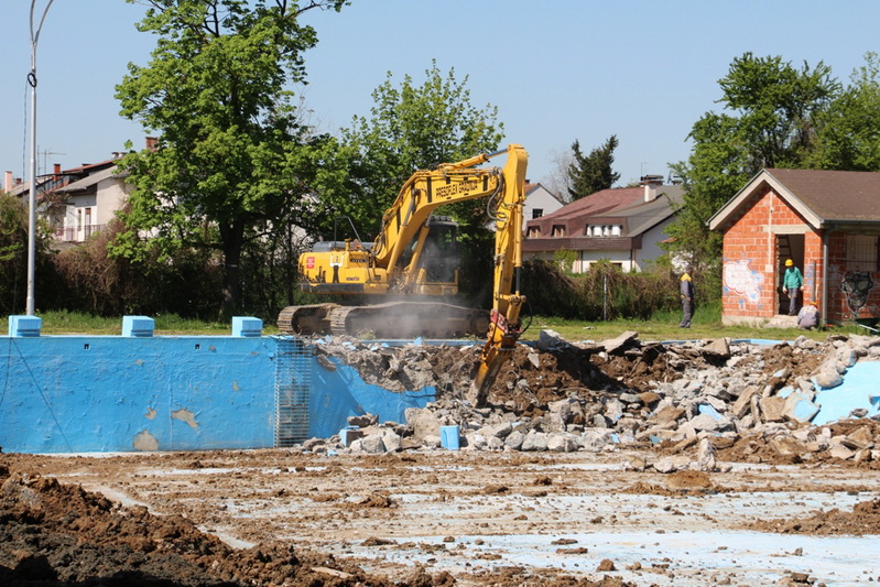 Gradnja novih bazena započela je prvo rušenjem školjke starog bazena koji je izgrađen 1953. godine, a radove je obišao i požeški gradonačelnik Vedran Neferović sa svojim suradnicima.