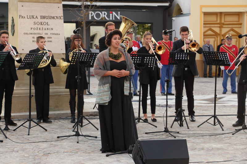 Poslije intoniranja hrvatske državne himne u izvođenju Komornog brass ansambla Glazbene škole Požega i profesorice solo pjevanja, soprana Ane Ticl, uslijedio je kratki recital od izabranih najljepših i najsnažnijih stihova iz Kanižlićeve Svete Rožalije na akcentuiranoj staropožeškoj ikavici u interpretaciji Draženke Majić. Stihovi su praćeni i pojašnjeni tekstom u izvođenju Zijada Gračića, člana ansambla Hrvatskog narodnog kazališta u Zagrebu o znakovitoj povijesti Trga svete Terezije, koji je prvi puta nakon 260 godina cjelovito uređen s namjerom da prati osnovne umjetničke i povijesne vrijednosti ove važne gradske cjeline.