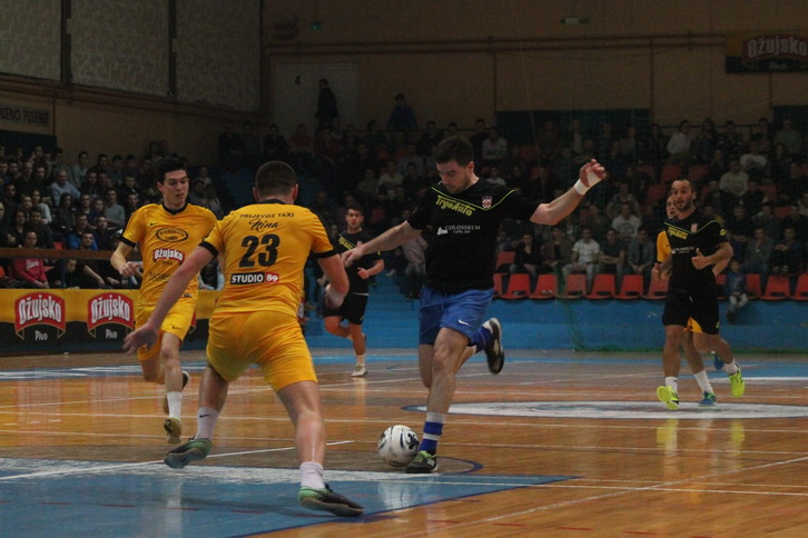 Finale se odigralo pred zaista krcatom dvoranom, možda 10-ak praznih sjedalica debelo je kompenzirano brojnim gledateljima koji su sjedili ili stajali po prolazima tako da je kapacitet dvorane od 1200 ljudi definitivno premašen. Svoje navijače iz Nove Gradiške imao je Rubikon, dok su oni koji su podržavali Crnu legiju stigli iz svih krajeva Hrvatske, od Vukovara do Dalmacije tako da je atmosfera u dvorani bila sjajna, poticajna za igrače koji su svima zahvalili odličnom partijom. Prve opasnosti kreirao je Matej Ivanović nakon dva kornera, najprije je prsima smirio jednu dugu loptu i iz voleja prekrasno tukao no lopta je negdje zapela u bloku i otišla u novi korner. Iz njega je lopta ponovno došla do istog igrača koji je sada tukao vrhom patike, a Crnu legiju je ovoga puta spašavao Mislav Kustura koji je izbio s crte. U 4′ vodstvo Rubikona, Kristijjan Jakić primio je loptu na 6-7 metara od Vasića koji mu je krenuo ususret, no Jakić je brzo reagirao i poslao mu loptu kroz noge u mrežu za veliko slavlje navijača Rubikona. Držali su žuti posjed i nakon tog vodstva, kontrolirali utakmicu i pomalo je pokušali umrtviti, no Crni su čekali svoju šansu i dočekali je u 6′ kada je Dario Šestić ostao usamljen na 7-8 metara iskosa no u posljednji trenutak u blok mu je ušao Eller. Minutu kasnije sjajni Eller je u glavnoj ulozi na suprotnoj strani, sjajno se sjurio kroz trojicu suparnika i odlično tukao na drugu no njegov udarac prolazi između vratnice i za stotinku zakašnjelog Ivanovića. Osma minuta donosi doličan pas Mislava Kusture za Velagu čiji pokušaj pogađa mrežu, no s vanjske strane. Odmah slijedi odgovor s druge strane, Velaga je petljao na centru, Niko Jović mu je oduzeo loptu, sjurio se prema golu Legije i sjajno pucao pod gredu, ali Vasić je reagirao fenomenalnom paradom i Rubikon je dobio samo korner. U 10′ još malo nogometne čarolije iz repertoara Mislava Kusture koji je s dva lažnjaka “slomio” Jovića, no dok se namjestio na šut omaleni igrač Rubikona se vratio i blokirao njegov pokušaj. Sve ovo se izdogađalo u samo 10 minuta, a bilo je tu naravno i još manje opasnih pokušaja, došlo je vrijeme za malu kreativnu pauzu pa sljedeću veliku