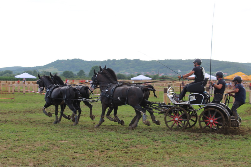 PLETERNICA - Drugog dana Međunarodnog konjičkog turnira CAI Pleternica voženo je niz utrka i natjecanja u preko 25 kategorija. Vozile su se utrke preciznosti s posadom i zapregama s jednopregom, dvopregom i što je posebno bilo atraktivno sa četveropregom. Kod četveroprega u zaprezi je tročlana posada, vozač zaprege i dva člana koja svojim pokretima i naginjanjem lijevo i desno pomažu u zakretanju zaprege, posebno u oštrim zavojima između zapreka.