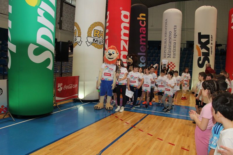 Svečani program Telemach Dana sporta započeo je paljenjem baklje koju je donijela Lucija Novak, mlada reprezentativka Hrvatske u stolnom tenisu, u pratnji maskote SIM-a Vikotra, medvjedića Lina i djece.