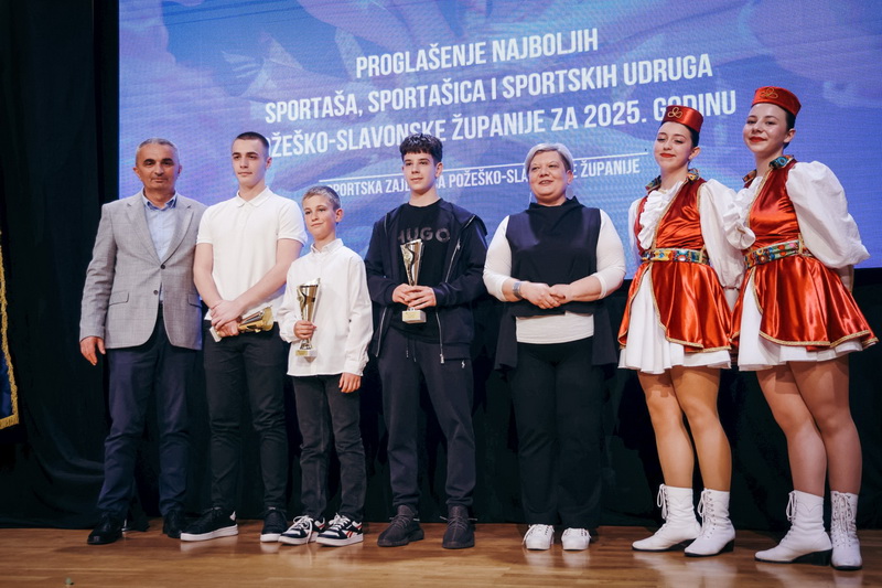 POŽEGA - U prepunoj Koncertnoj dvorani Glazbene škole Požega, održana je dodjela nagrada najboljim sportašicama, sportašima i sportskim udrugama Požeško-slavonske županije za 2025. godinu.Organizator dodjele bila je Sportska zajednica Požeško-slavonske županije uz potporu Požeško-slavonske županije.