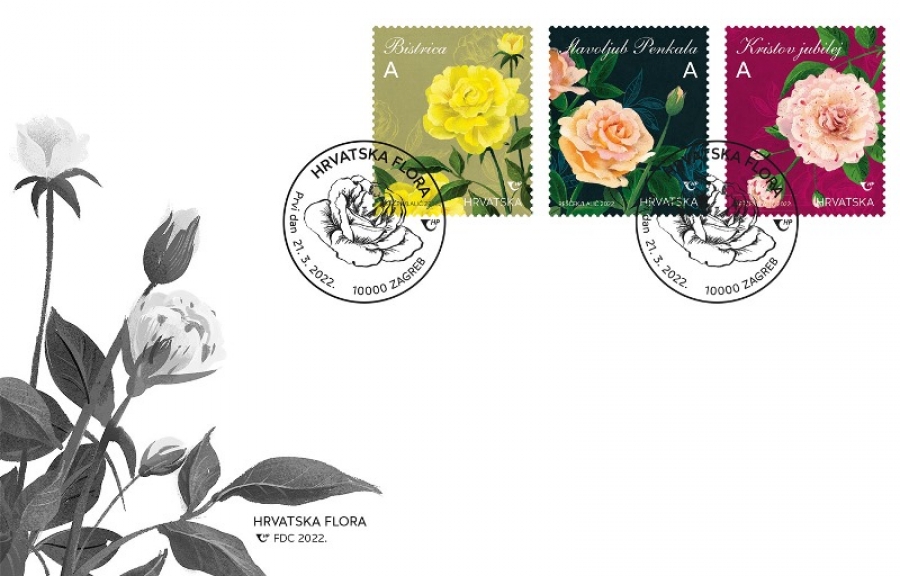 – Hrvatska pošta pustit će u optjecaj 21. ožujka 2022. nove prigodne poštanske marke iz serije „Hrvatska flora“ s motivom odabranih sorta ruža uzgojenih u Hrvatskoj, čiji je tvorac Josip Rogin: bistrica, Kristov jubilej i Slavoljub Penkala. Autorica maraka je Alenka Lalić, dizajnerica iz Zagreba, a autorica ilustracija Sanja Rešček Ramljak, zagrebačka akademska slikarica i dizajnerica. Vrijednost maraka označena je slovnom oznakom A što odgovara iznosu poštarine za pismo mase do 50 g u unutarnjem prometu te za dopisnicu/razglednicu u unutarnjem prometu. Marke su izdane u arcima od 20 maraka i karnetima od 10 maraka, a Hrvatska pošta izdala je i prigodnu omotnicu prvog dana (FDC) te tri maksimum-karte.