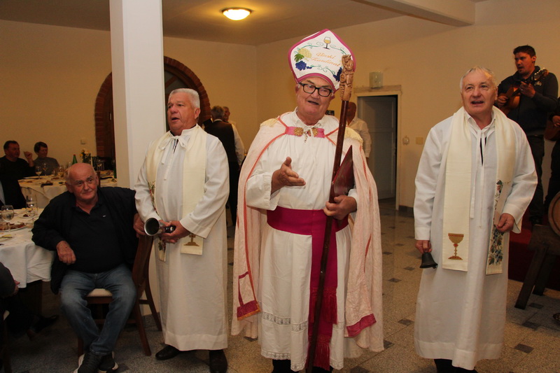 Kulminacija večeri svakako je tradicionalna ceremonija krštenja mošta po starim statutima. - Nijedne godine mošt nije postao vino bez ovog obreda - počinje stari ceremonijal kojega vodi, jedini u Hrvata, vinski kardinal Vladimir Bauer, ove godine uz pomoć ministranata Željka Pejkovića i Uroša Svitlice. Biser kum ove godine bio je Slaven Krstić iz Splita. Vinski kum se morao svečano obvezati da će godinu dana voditi obvezu čuvanja novorođenca, a sve to morao je potvrditi ispijanjem povećeg pehara mladog vina. Za to je dobio i pohvale vinskog kardinala, kao posebno i rijetko viđeno „žedan kum“, što je pohvala za kuma koji bez prekida, gotovo naiskap popije pehar koji sadrži bar pola litre vina. Da je sve popio mora pehar okrenuti naopako iznad glave, pa ako je „manje popio“ ostalo mu se istrese po glavi. Slaven Krstić je i tu bio „biser kum“ jer mu na glavu nije pala niti kapljica vina.