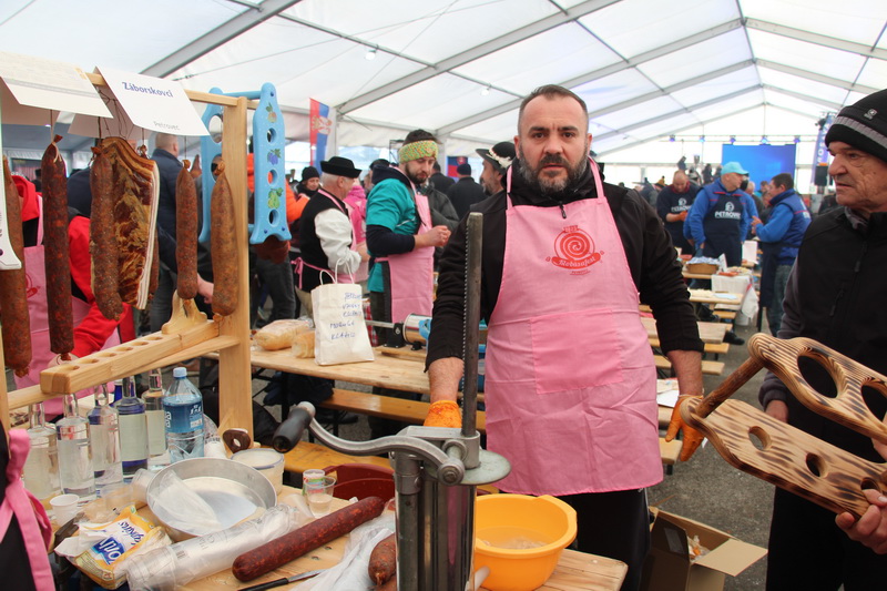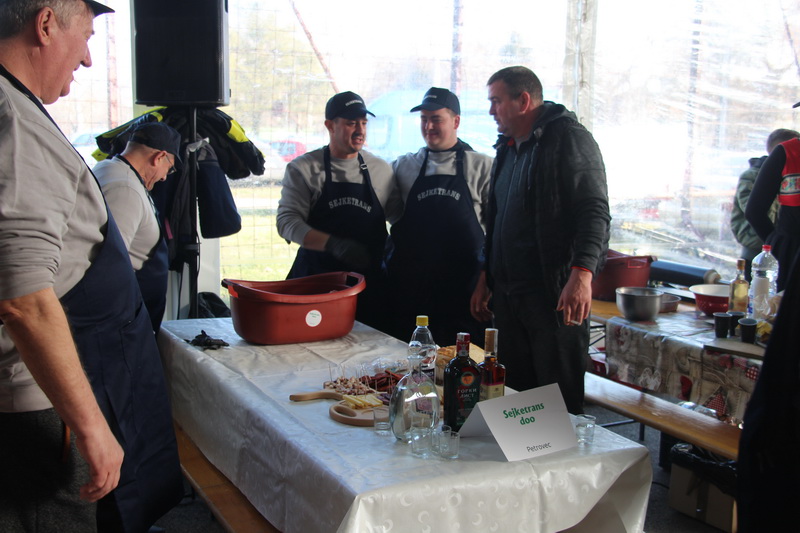 Na štandu jedne ekipe iz Bačkog Petrovca zatekli smo i poznato lice, Požežanina Marka Dumančića koji se natjecao sa velikom ekipom svoje rodbine koja je poznata po proizvodnji voćnih rakija i suhomesnatih proizvoda.