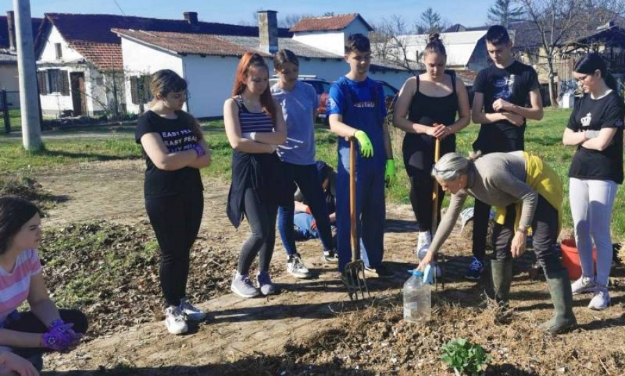 POŽEGA - Proteklog tjedna učenice i učenici prvog razreda zanimanja agroturistički tehničar s profesoricom Anom Kelam krenuli su sa sjetvom i sadnjom biovrta. Tijekom jeseni i zime tlo su pripremili prema pravilima biovrtlarstva te su s toplim danima krenuli s ovom fazom projekta.