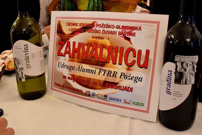 Svi koji su na manifestaciji posjetili stol Fakulteta turizma i ruralnog razvoja u Požegi mogli su osim sarme uživati u vrhunskim Akademskim vinima zlatne doline te tradicionalnim kolačima koji se pripravljaju ovdje u Slavoniji. U sklopu događaja sniman je prilog za novi projekt Hrvatske radiotelevizije čiji je voditelj Robert Knjaz. Na promociji ispred Fakulteta bili su nazočni prodekan za razvoj i poslovanje Fakulteta turizma i ruralnog razvoja doc. dr. sc. Berislav Andrlić, članovi udruge Alumni Ivan Matijević, Zdravko Matičević te predsjednik Alumni "FTRR" Bruno Horvat.