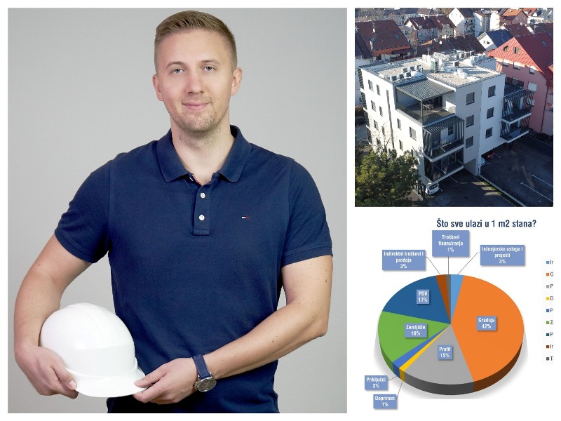 „Najprije bih volio spomenuti prvi „trošak“ u cijeni kvadrata, a to je PDV koji direktno ide državi, dakle ako je cijena neto kvadrata stana 3.000€, gotovo transakcijski državi ide 600€, dakle developeru ostaje 2.400€ za pokrivanje svih troškova i eventualnu zaradu.Daleko najznačajniji trošak je gradnja, ona u cijeloj investiciji čini 40-45% troškova. Kod gradnje je potrebno spomenuti da developer gradi zgradu po BRP (u što ulaze i površine zidova, stubišta, hodnika i kotlovnica), a prodaje samo neto kvadrate. Tu gradnja više ne košta 1.200 – 1.400 €/m2, već se ostvaruje 20% manje neto kvadrata, dakle trošak gradnje je u tom slučaju 1.500 – 1.750€/m2.Potom je tu i zemljište, projektiranje i stručni nadzor, troškovi priključaka, komunalnog i vodnog doprinosa, troškovi marketinga i prodaje i ostali indirektni troškovi koji se mogu popeti do 1-2% investicije“, objašnjava Saša Perko koji nam je pojasnio i zašto cijene nekretnina nisu jednake u Zagrebu, na moru ili u Slavoniji.