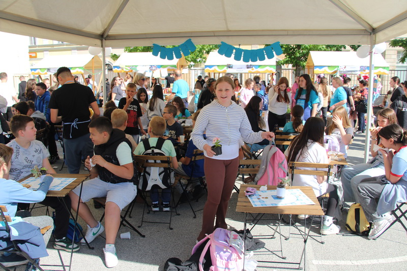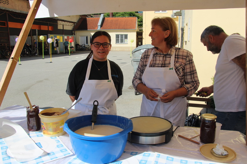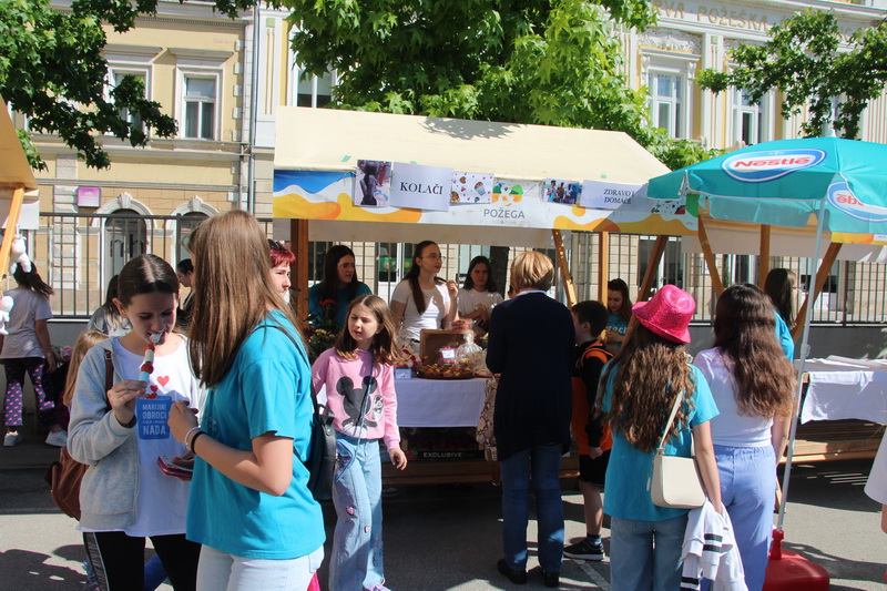 Uz prigodni program na pozornici koji su im pomogli svojim nastupima učenici Glazbene škole Požega, učenici OŠ Dobriše Cesarića, učenici OŠ Julija Kempfa, učenici Katoličke osnovne škole i domaći učenici, učenici srednjih škola, započeo je Humanitarni sajam. Sve okupljene na sajmu pozdravila je ravnateljica škole Renata Marinić a pročelnica Maja Petrović ispred grada Požege dala je podršku ovom humanitarnom projektu.
