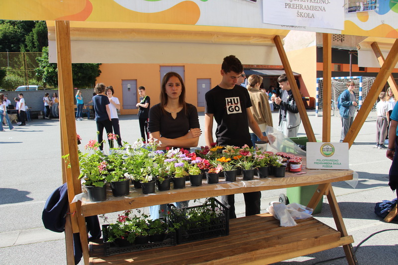 Na brojnim štandovima na prodaju su ponuđeni brojni radovi učenika, učeničke zadruge i predmeti koje su donijeli učenici od svojih kuća. Organizirali su i pravu ugostiteljsku ponudu s restoranom i kafićem u kojima ste mogli dobiti, od sendviča, hot doga, pizze, vrućih palačinki, mnoštvo vrsta kolača, kavu, čaj i sokove, a učenici su se iskazali u pripremi jela, slastica, pića, ali i kao konobari koji su usluživali svoje kolege, goste škole, građane koji su navratili na sajam i ostale posjetitelje. Štandove su imale i Obrtnička škola, Poljoprivredno prehrambena škola, Fakultet turizma i ruralnog razvoja i Studentski dom, a bila je za posjetitelje organizirana i aukcija vrednijih predmeta i poklona.