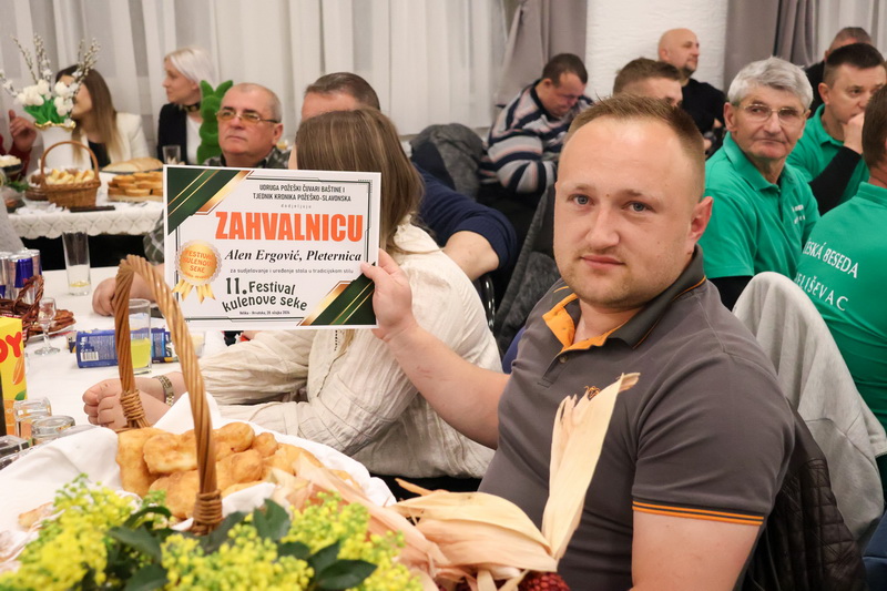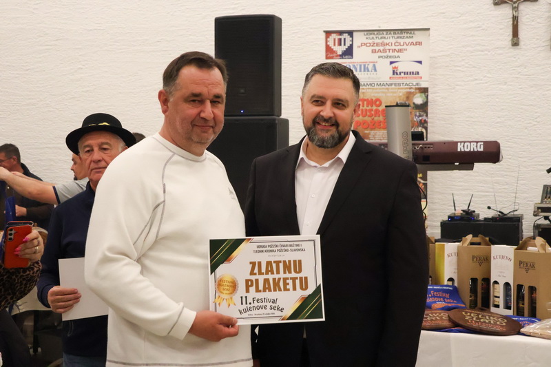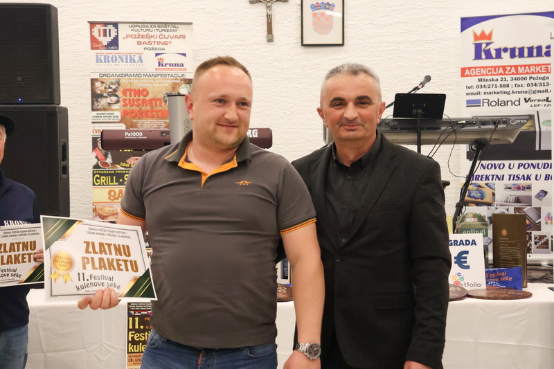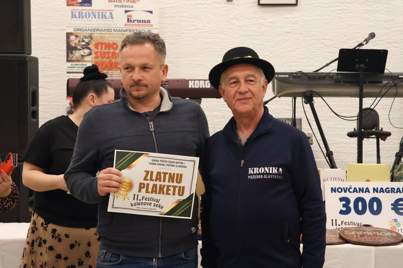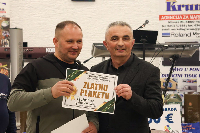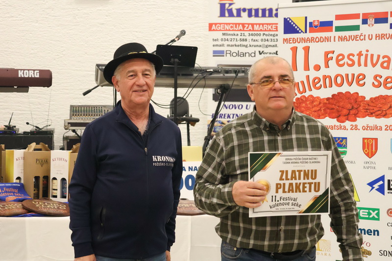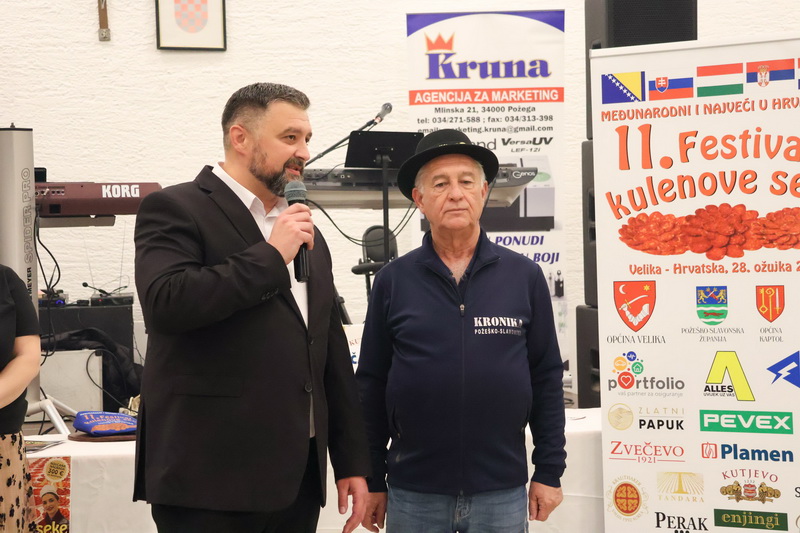 - Izrazito sam zadovoljan što smo zadržali visoki broj odazvanih proizvođača kulenovih seka, ove godine i rekordnih 134 uzarka, ali i po rekordnom broju posjetitelja u dvorani kojih je bilo iz cijele Hrvatske i inozemstva preko 400. Posebno sam ponosan na činjenicu da smo ove godine imali i veliki broj pobjednika s ostalih kobasijada u Hrvatskoj, BiH i Vojvodini, koji su uspjeli dokazati svoju kvalitetu odnijevši titulu velikog zlata i nekoliko visokih odličja i na našem Festivalu. Posebno sam zadovoljan jer onu sliku kada imate na pladnjevima narezano, svih 134 uzorka kulenovih seka, koju degustiraju svi posjetitelji u dvorani i ocjenjuju najbolju po njihovom mišljenju, ne možete često vidjeti. To je fotografija za pamćenje, koja i nas organizatore nosi da ustrajemo i organiziramo sve bolji i bolji Festival kulenove seke. Posebno zahvaljujem ocjenjivačkoj komisiji koja je izdržala pet satno ocjenjivanje i kušala i ocijenila svih 134 uzorka – istakao je idejni začetnik i pokretač nekoliko etno i gastro manifestacija u Požeštini, Vladimir Protić, predsjednik Udruge Požeški čuvari baštine i urednik Tjednika Kronika požeško-slavonska koja je organizirala i ovogodišnje izdanje festivala uz pokroviteljstvo općine Velika, Kaptol, Brestovac, Požeško-slavonske županije, TZ Zlatni Papuk i Led elektroteam Vidovci.