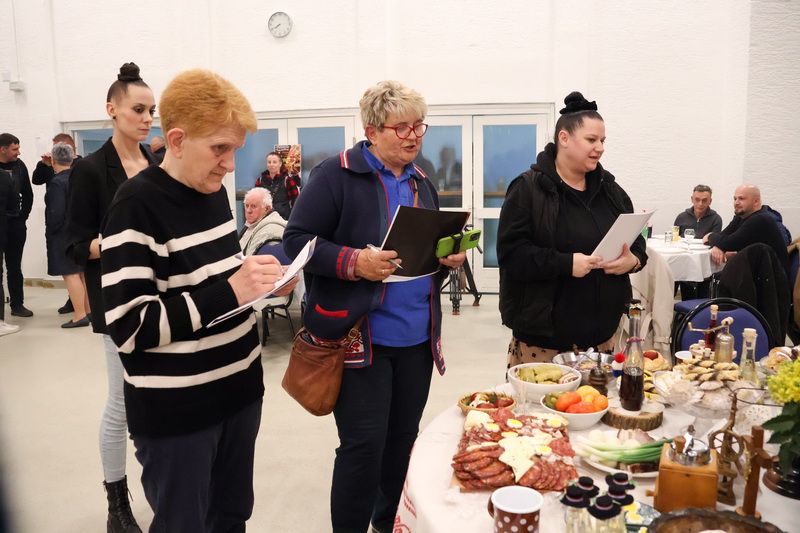 Organizator je nagradio i najljepše uređene stolove u nekome od starih običaja baštine i tradicije, koje su posebno uređivali članovi dvanaest folklornih društava, etno grupa, lovačkog društva i ostalih društava ove godine u dvorani. Treće mjesto i vrijedne PEVEX-a nagrade uz plaketu osvojila je najbrojnija skupina KUD-a Požeška dolina Požega i KUD-a Ivo Čakalić Kaptol, koji su uz plaketu dobili i poklon butelja Vinarije Tandara iz Kutjeva i Soldo iz Vetova. Drugo mjesto osvojio je stol koji su uredili članovi KUD-a Zavičajnog društva "Rama" iz Pleternice, uz poklon velike roštilj tave "Plamen" Požega, poklon butelja Vinarije Tandara i Soldo, a prvo mjesto osvojili su sa odlično opremljenim stolom i prikazom lovačkih objekata i lovišta uz suhomesnate delicije Lovačko društvo Papuk iz Biškupaca. Svi su nagrađeni vrijednim nagradama tvrtke Pevex Zagreb, Plamen Požega, Kutjevo d.d. Catrum Gin Kaptol i kutjevačkih vinarija. Svoje stole su uredili i članovi KUD-a Šijaci iz Biškupaca, KUD Bektež iz Bekteža, Češka beseda iz Bjeliševca, Matica slovačka iz Jakšića, Obitelj Mandić iz Velike, HPD "Sokolovac" iz Požege, KUD Orljava Pleternica i KUD Ivan Goran Kovačić iz Velike, KUD Krešimir Šimić Podcrkavlje, Obitelj Čakalić Češljakovci, Obitelj Ergović Pleternica, Humble Logistics Zagreb i drugi.