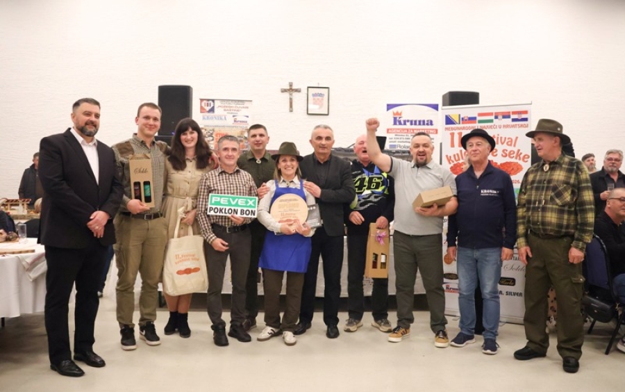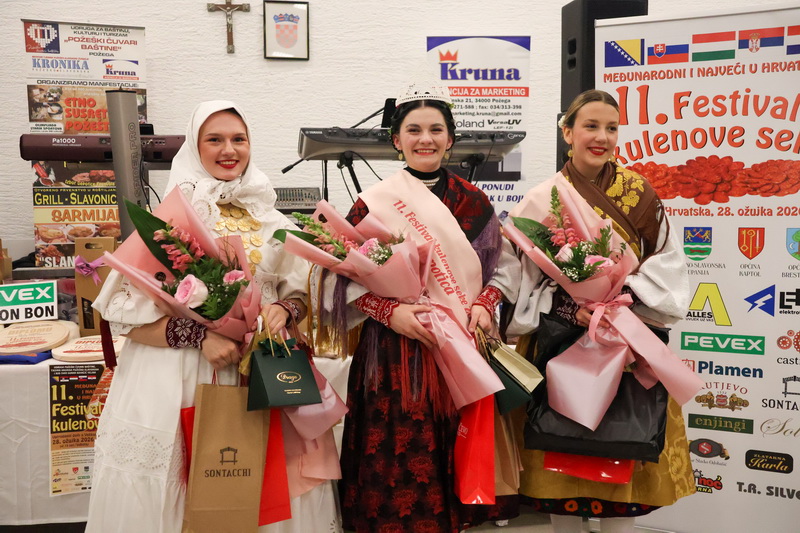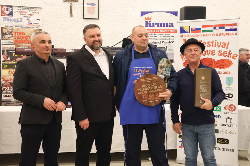 VELIKA - Ponovno rekordni i najveći do odaziv proizvođača kulenove seke, čak 134 uzoraka iz zaista cijele Hrvatske i tri susjedne države i ovaj 11. Festival kulenove seke 2026. ostavile su i dalje kao najveće natjecanje u Hrvatskoj i još jače Međunarodno natjecanje u kvaliteti debele sporo fermentirane kobasice. U zaista velikom stilu održan je 11. Festival kulenove seke u Vatrogasnom domu DVD Velika uz nazočnost preko 400 proizvođača, posjetitelja i uzvanika, uz izbor Ljepotice kulenove seke, najljepšeg etno i gastro stola, izbor najbolje kulenove seke po izboru posjetitelja i naravno ocjenjivanje najboljih kulenovih seka po ocjeni stručnog povjerenstva.